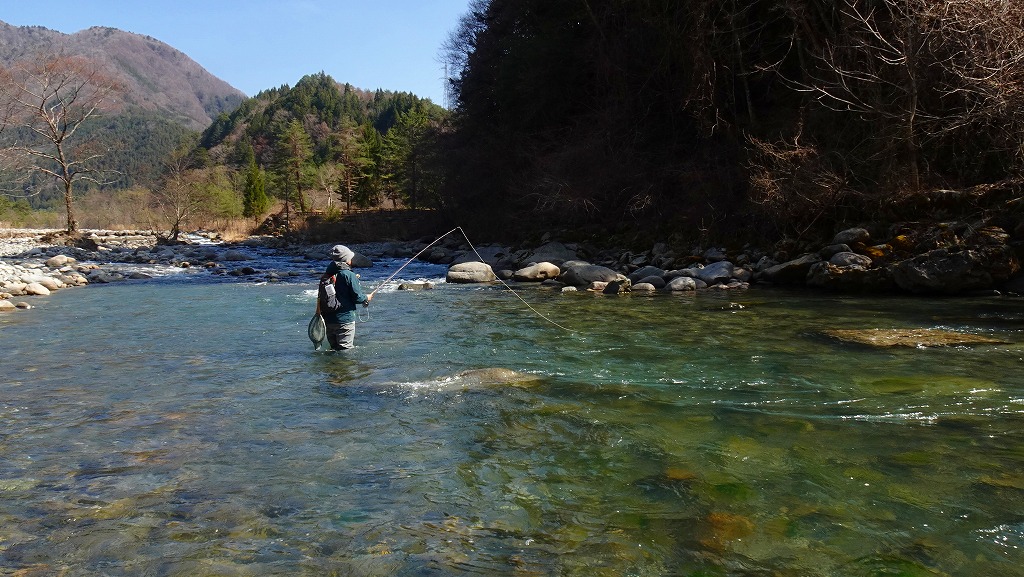 そしてライズがあった流れにフライを落とすと一発でフッキング。