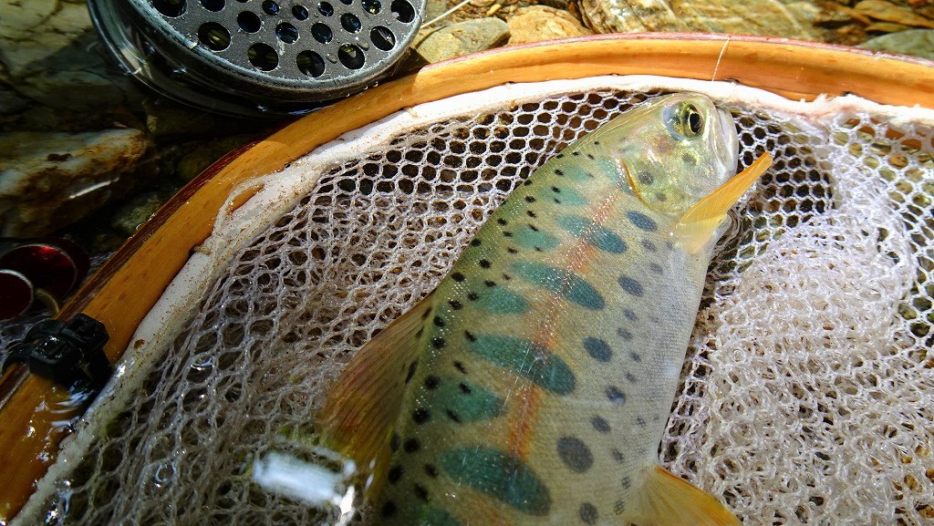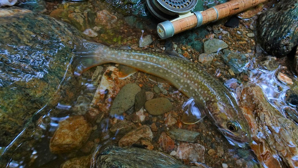 前回は小さいイワナしか見えませんでしたが、今回はいいサイズのイワナも浮いています。