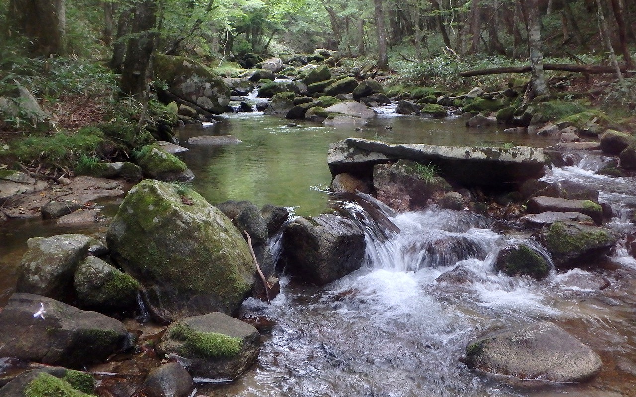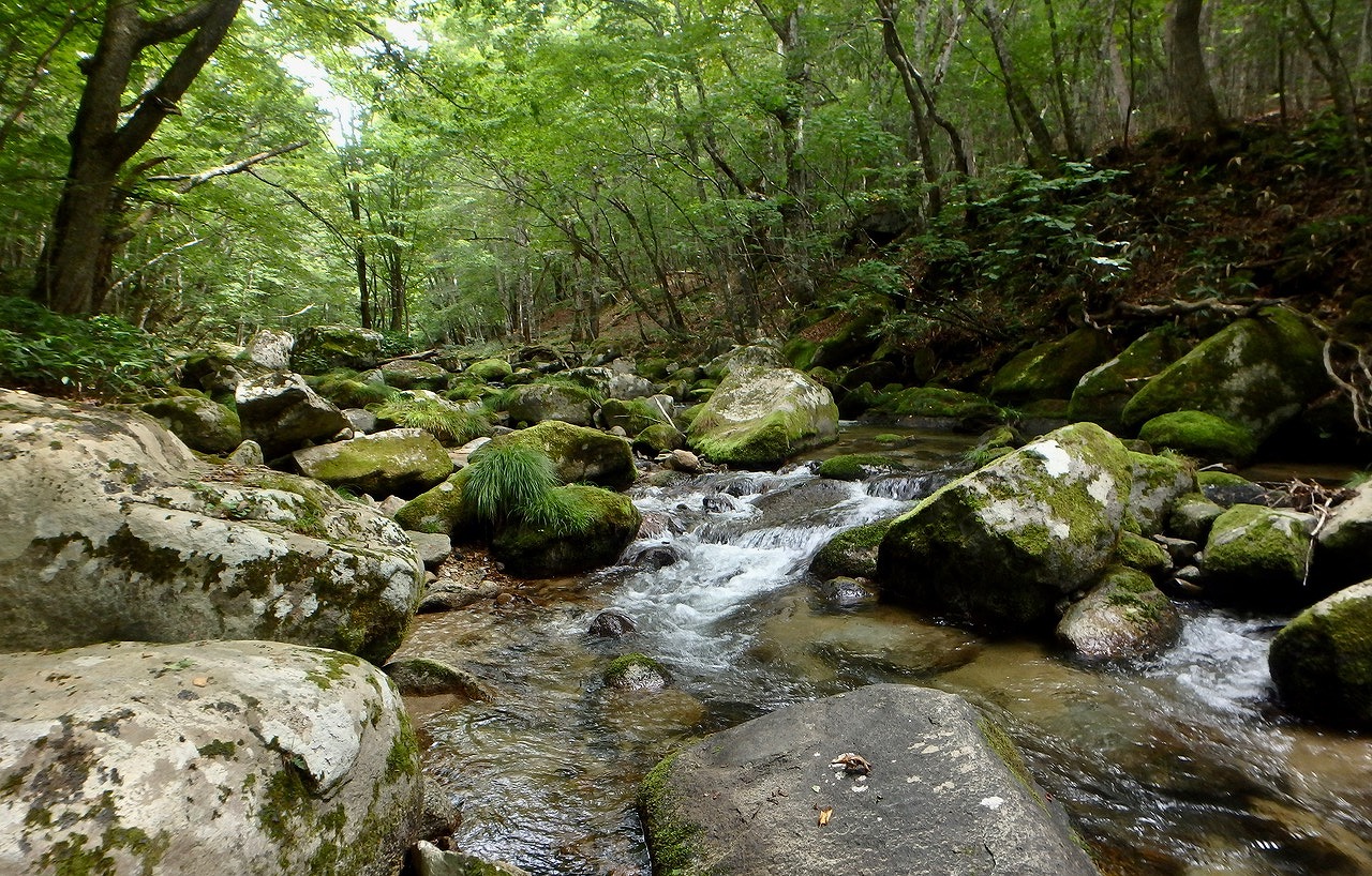 遠野はゆったり緩やかな流れでの釣りが多いが、ここは美しい渓流の風景だ。