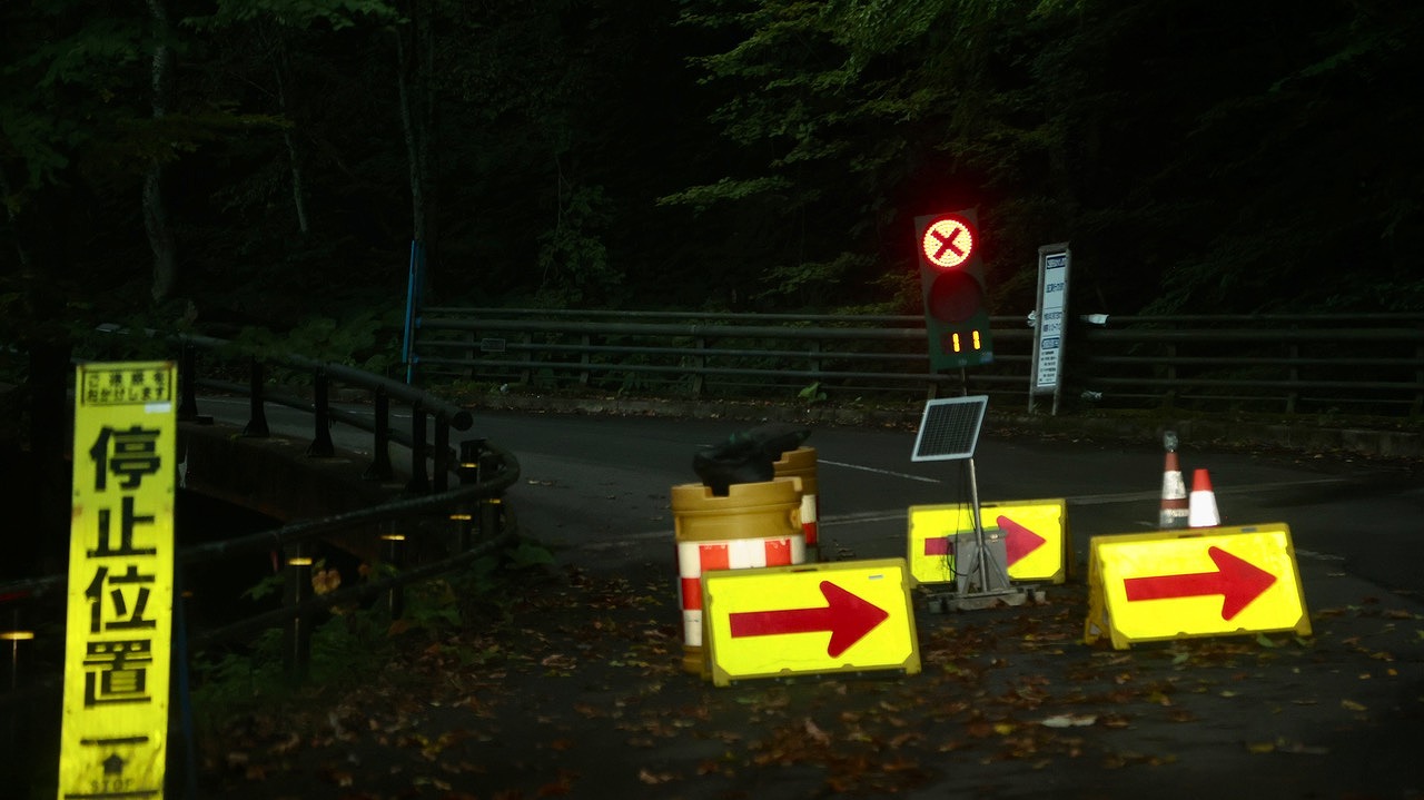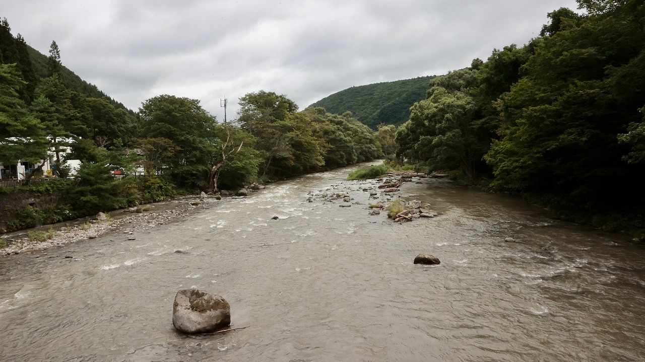 渓流沿いの道路は崩れ一時は通行止めになったそうだ。