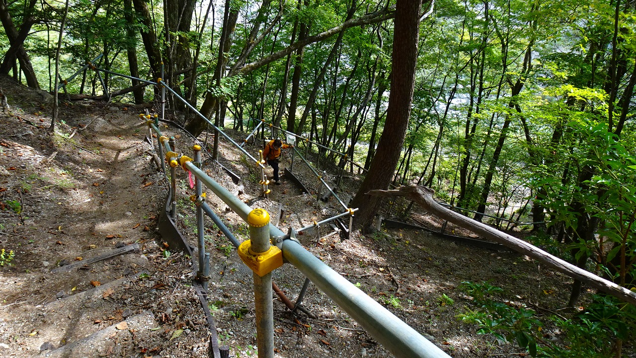帰りの登山道ではすっかり雨が上がりレインを脱いで快適に下ります。