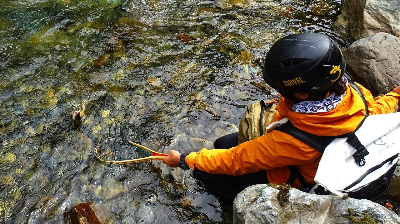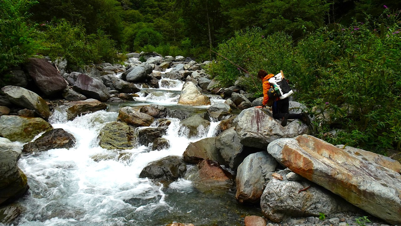 うっかり近づいてしまうと走られてしまうのでポイントごとに先にイワナを見つけてから狙います。