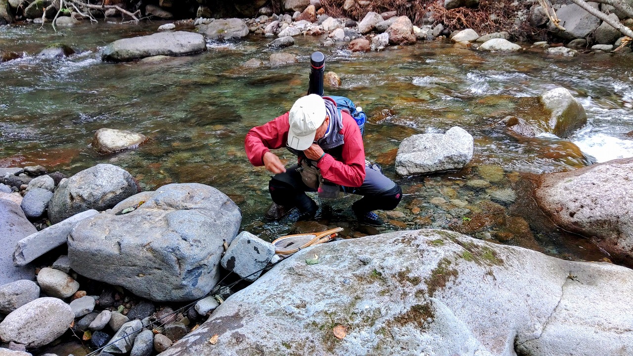 禁漁間近の北アルプス南端の渓へ。1日目。