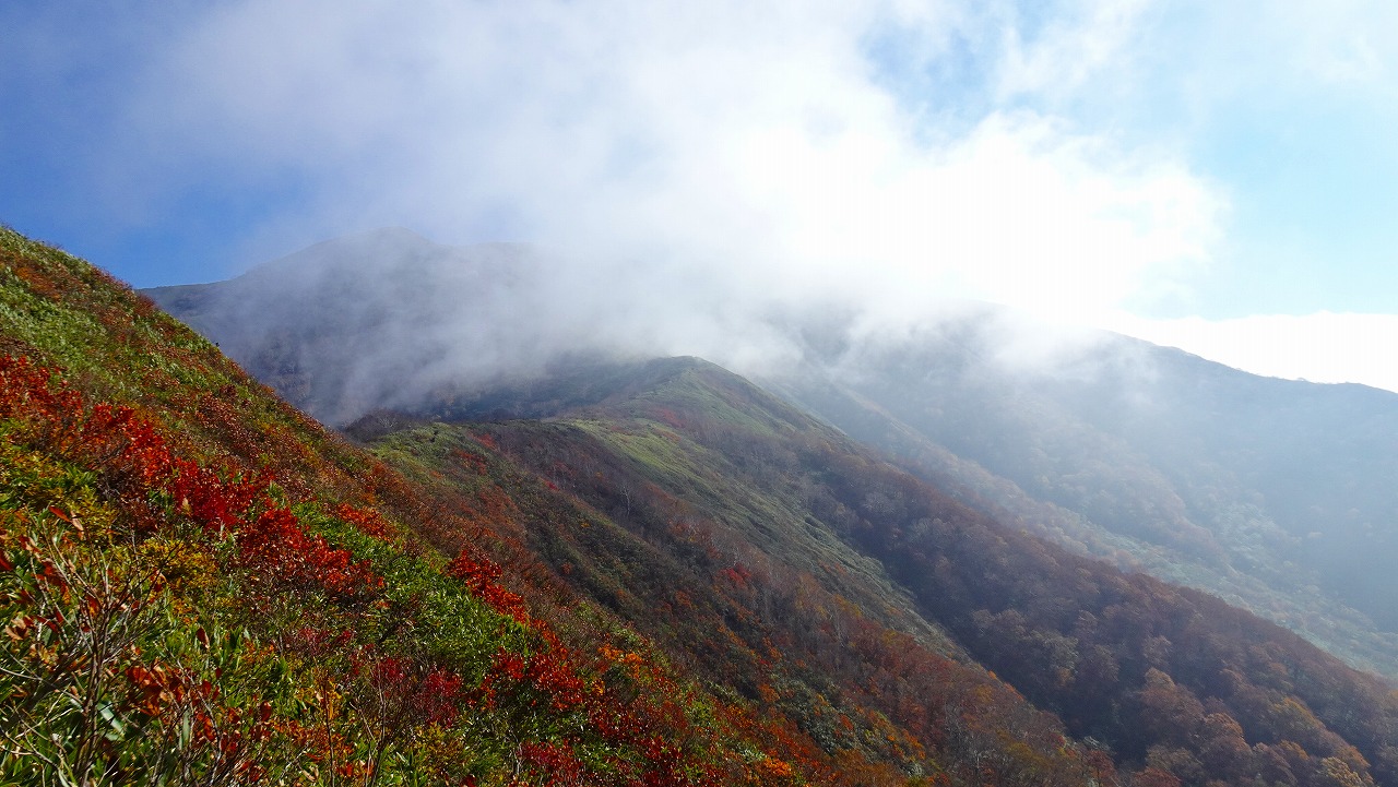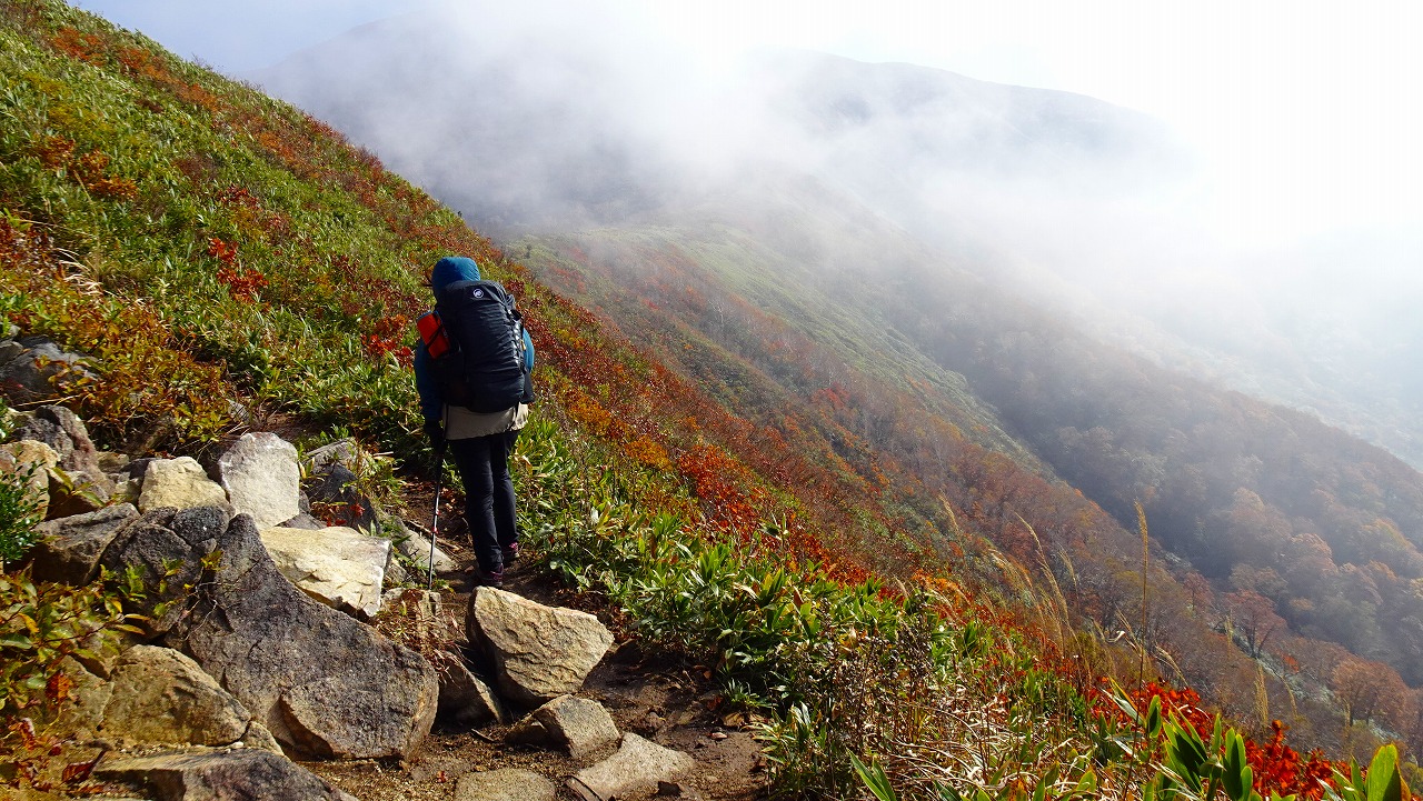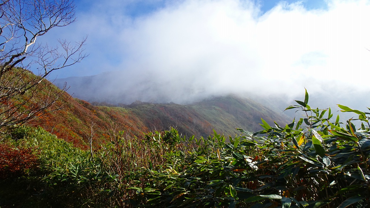 天気予報では9時過ぎにガスが抜けるみたいなのでそれを信じて歩き続けます。