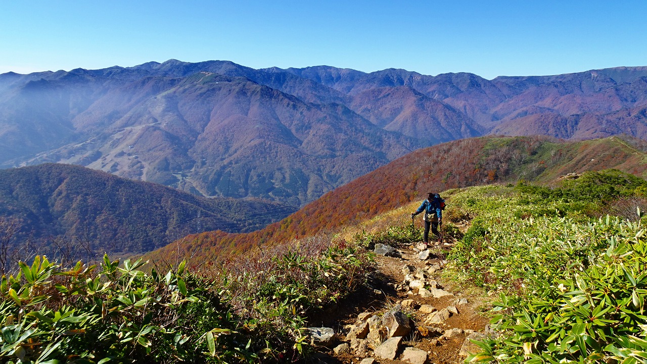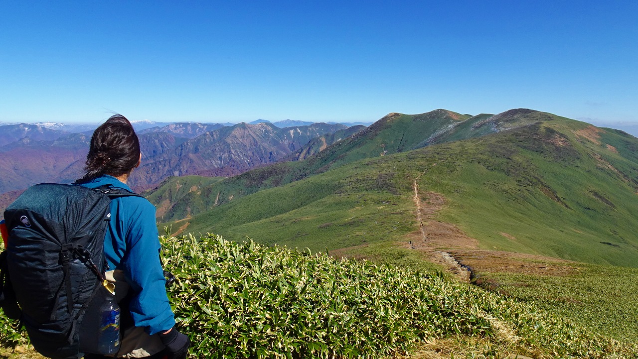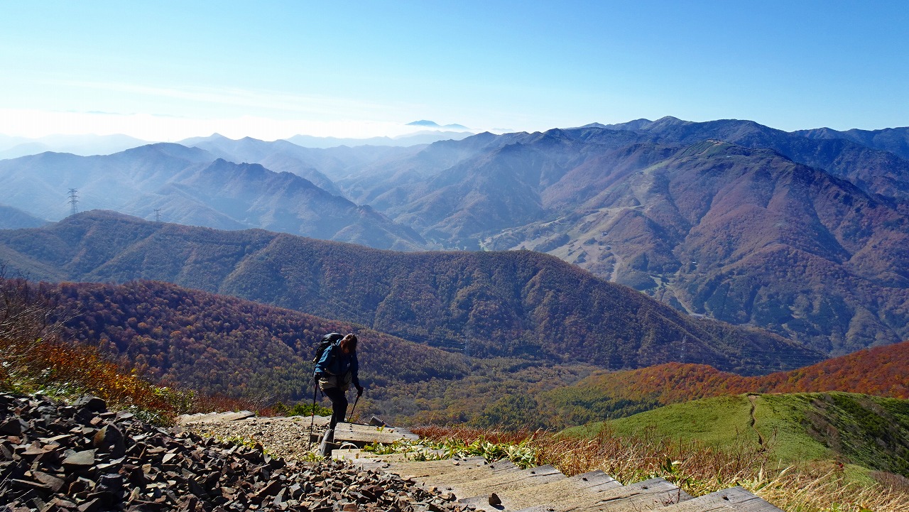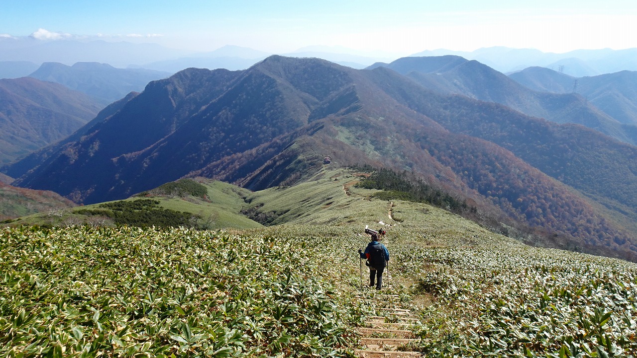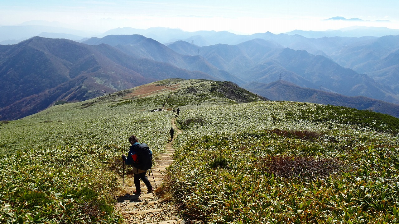 山頂からの眺望を楽しんだ後は「平標山の家」を経由した周回コースで下山します。