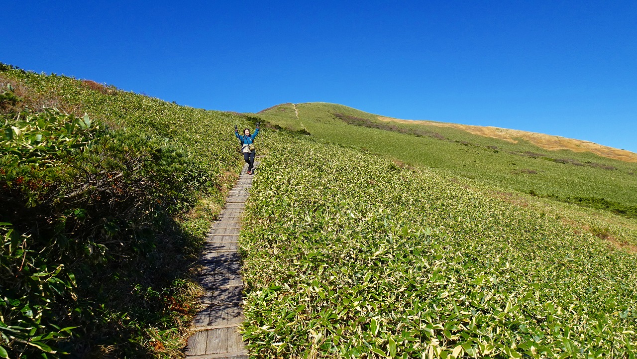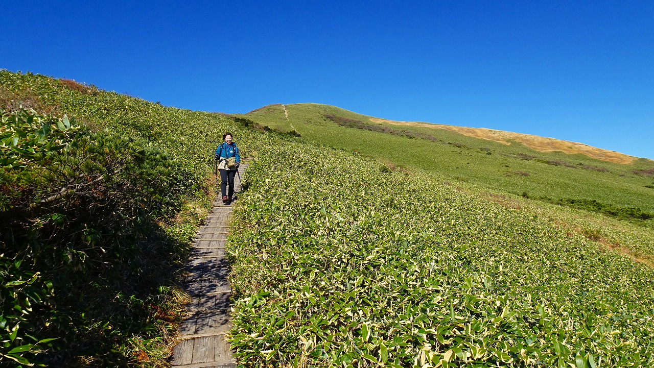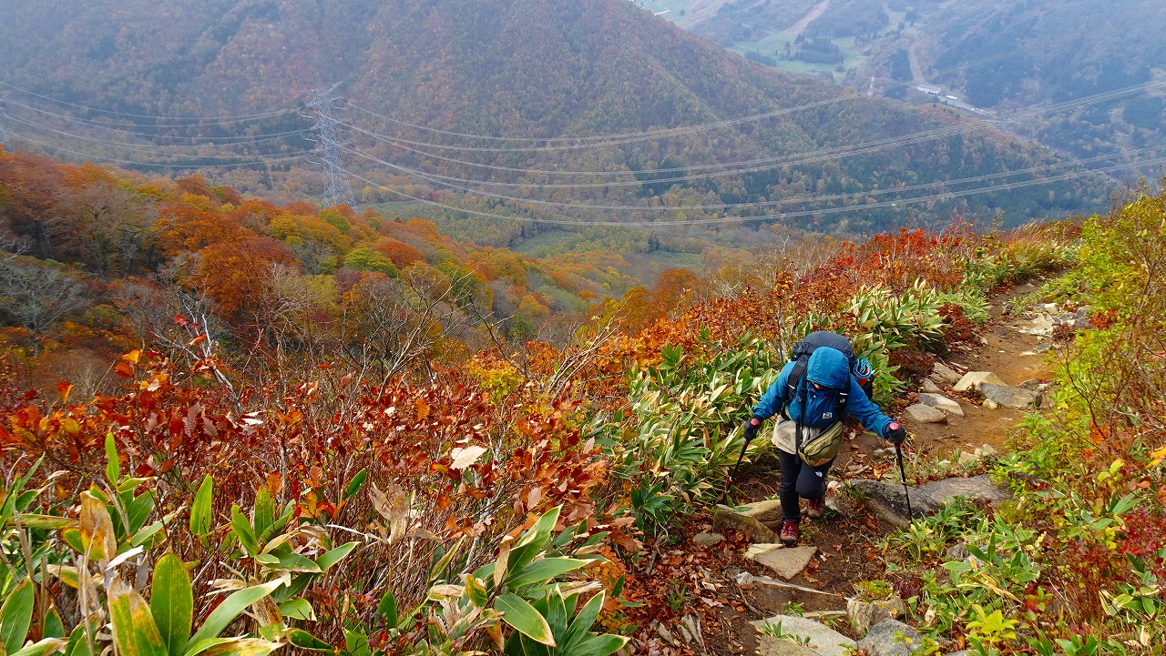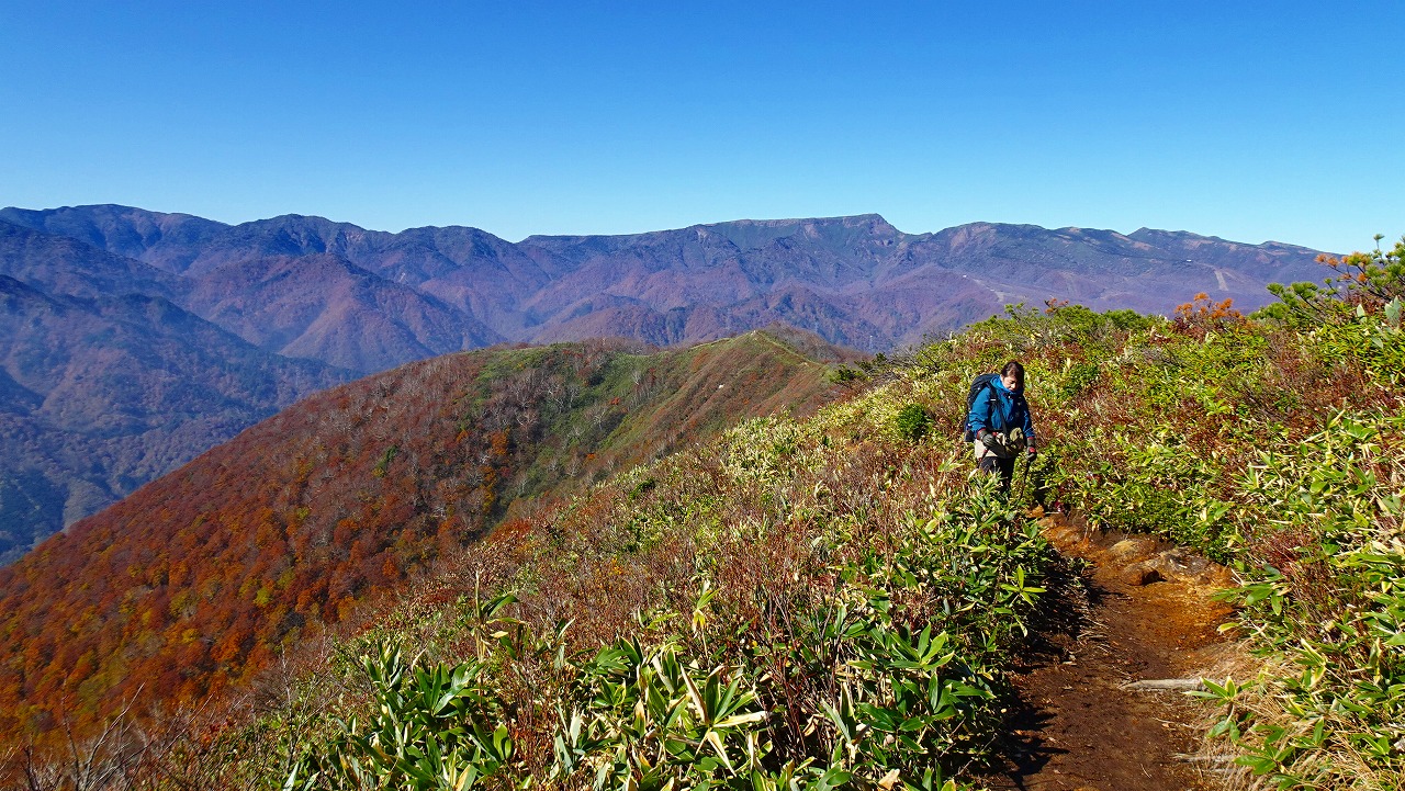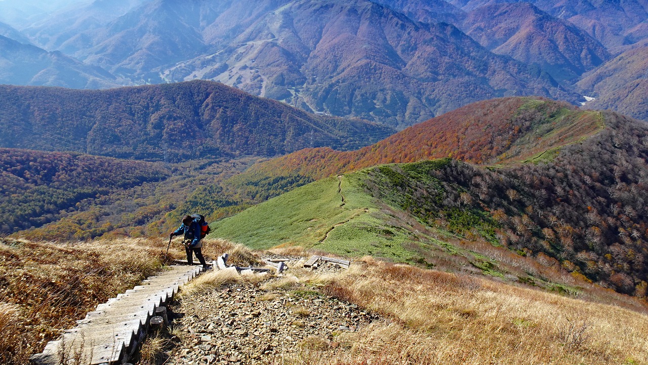 山頂からの眺望を楽しんだ後は「平標山の家」を経由した周回コースで下山します。