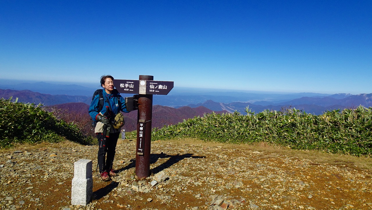 歩きはじめて6時間弱、平標山のピークに到着です。それにしてもいい天気。気持ちいい〜。