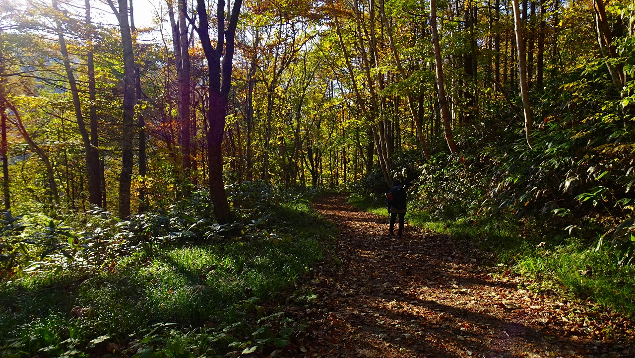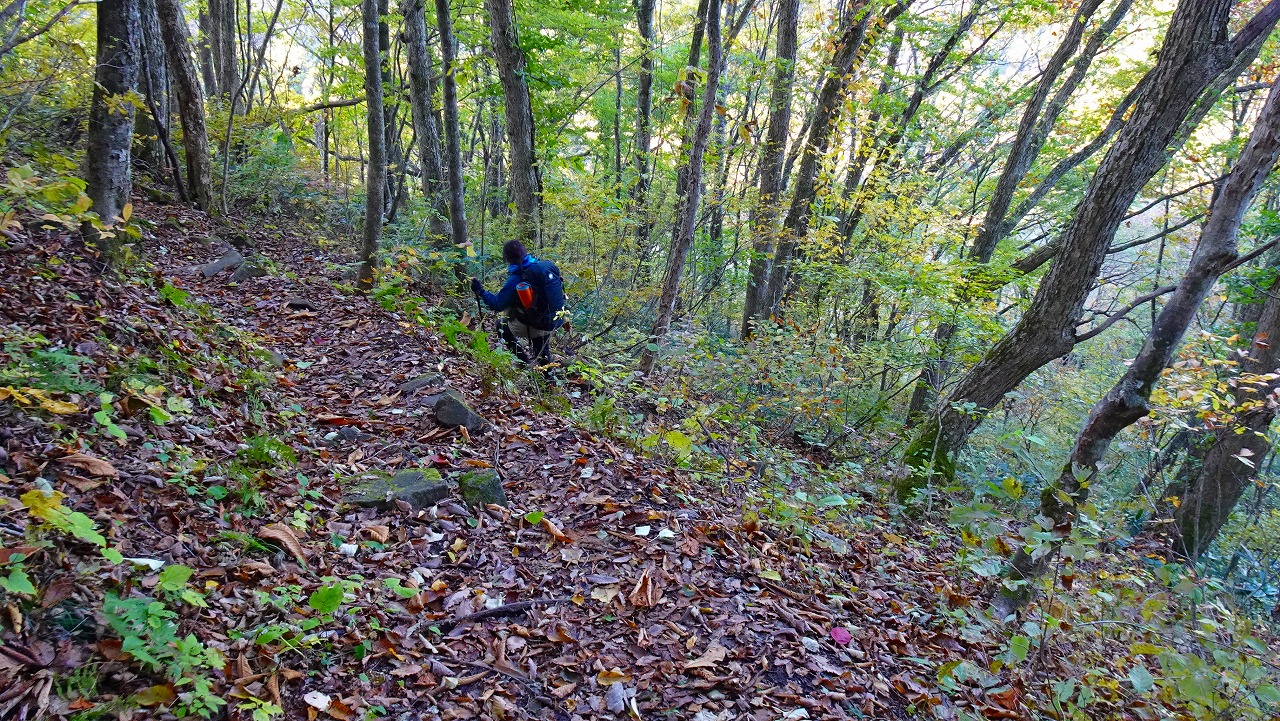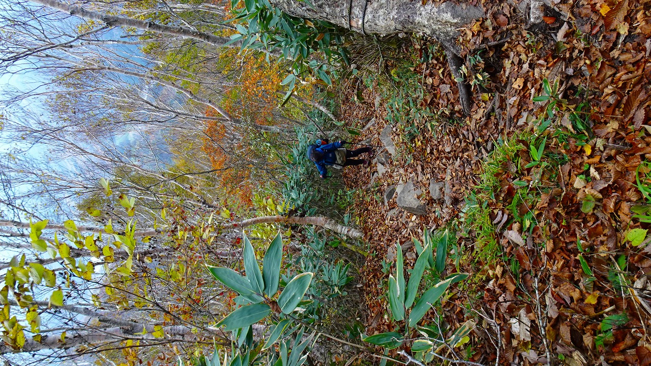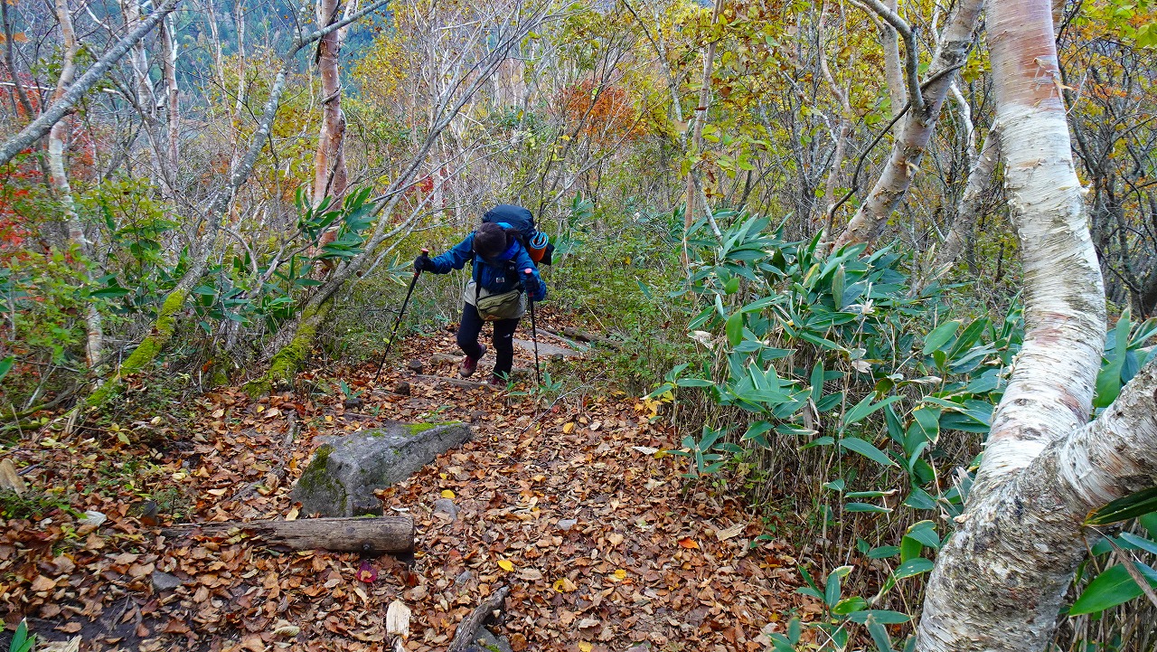 ご機嫌な白樺主体の樹林帯ですが、登山道の斜度がご機嫌ではありません(笑)。