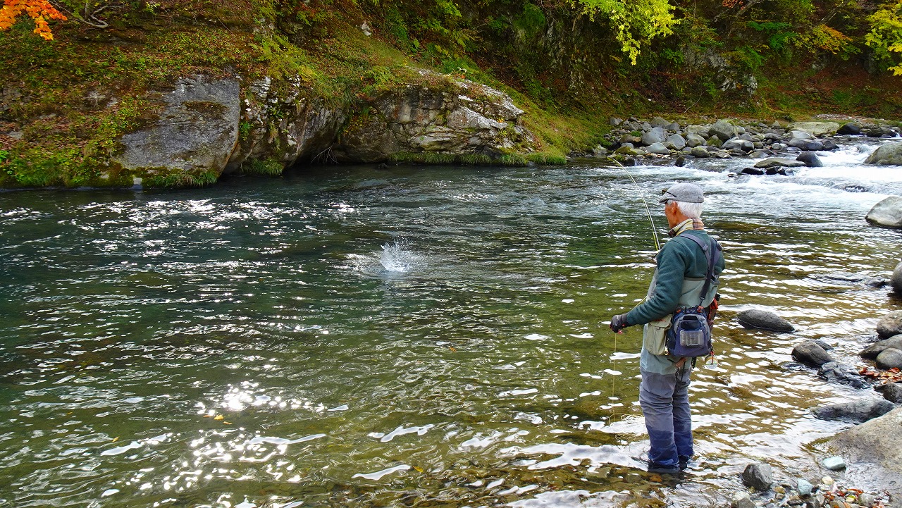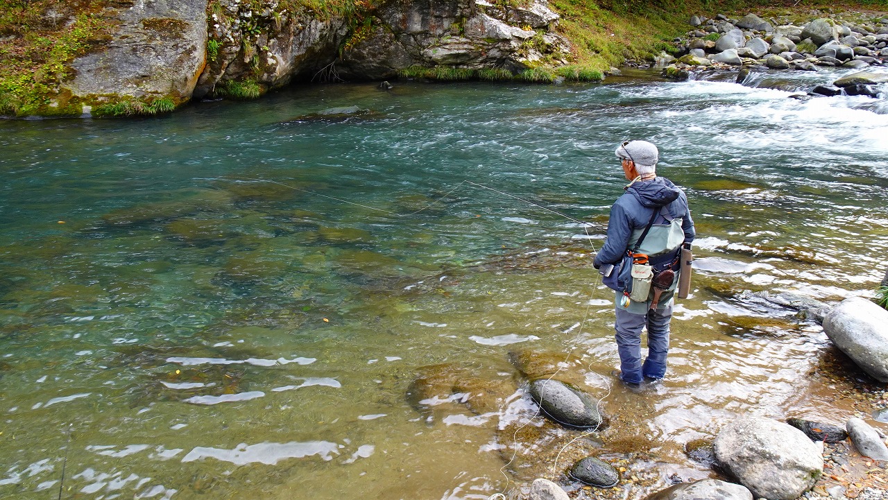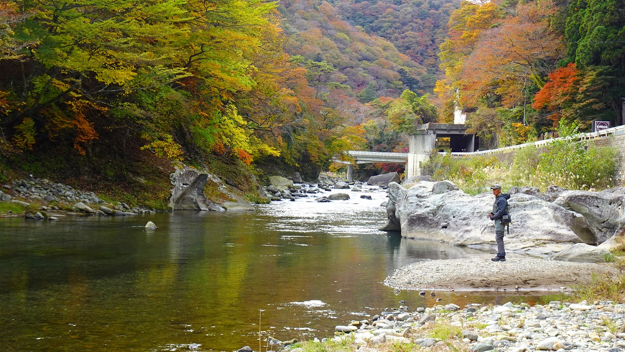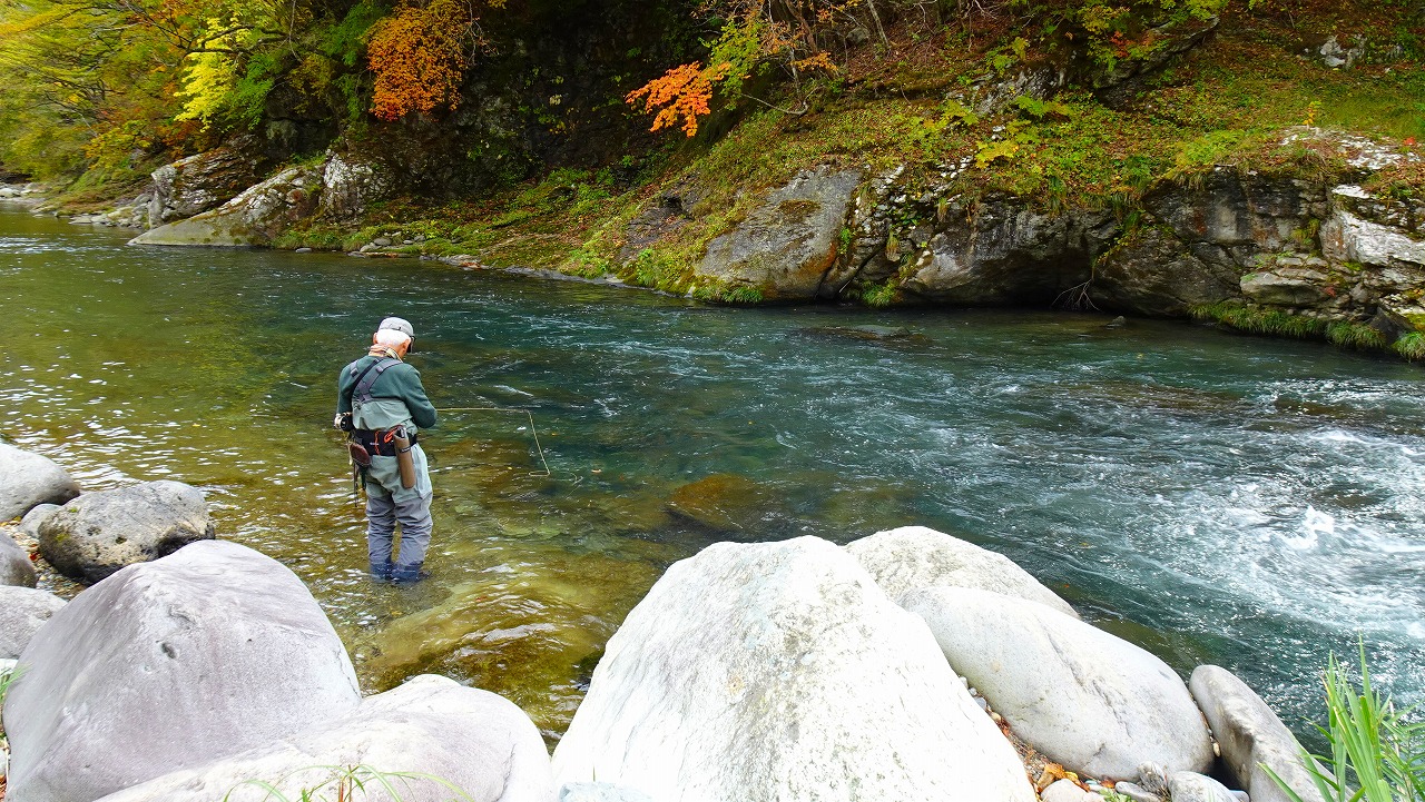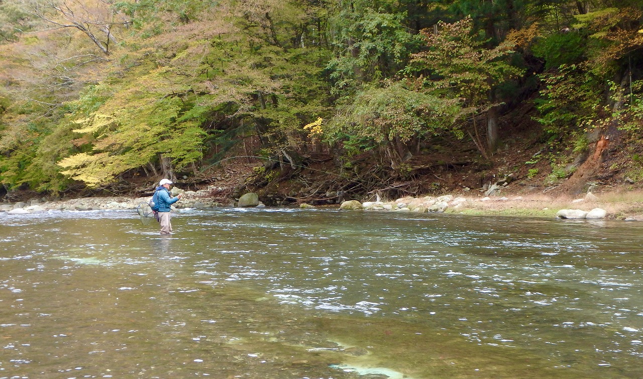 もう少しして葉っぱが散り始めると流れてくる葉っぱが釣りをやりにくくしますがこれならまだ大丈夫。