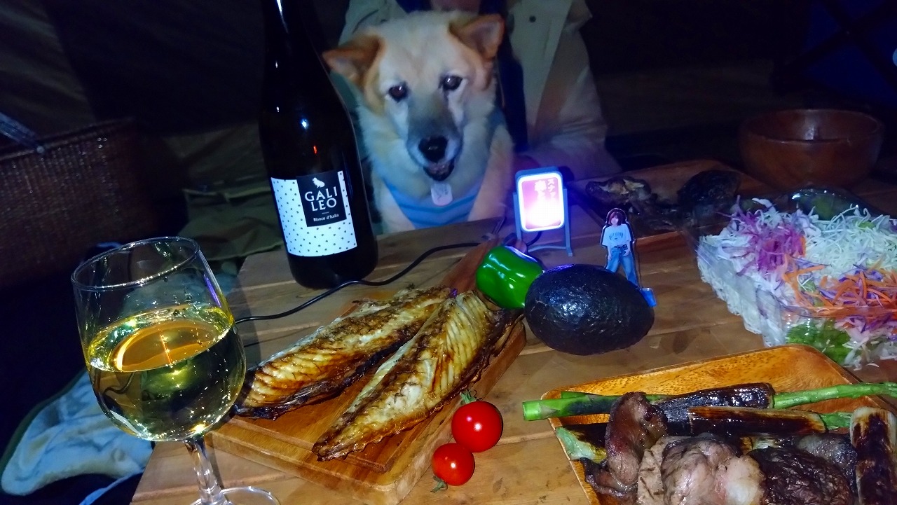 ビールと猪肉でガッツリ飲み食いした後はサバの塩焼きとsyatyouさんの差し入れのワインで二次会突入。