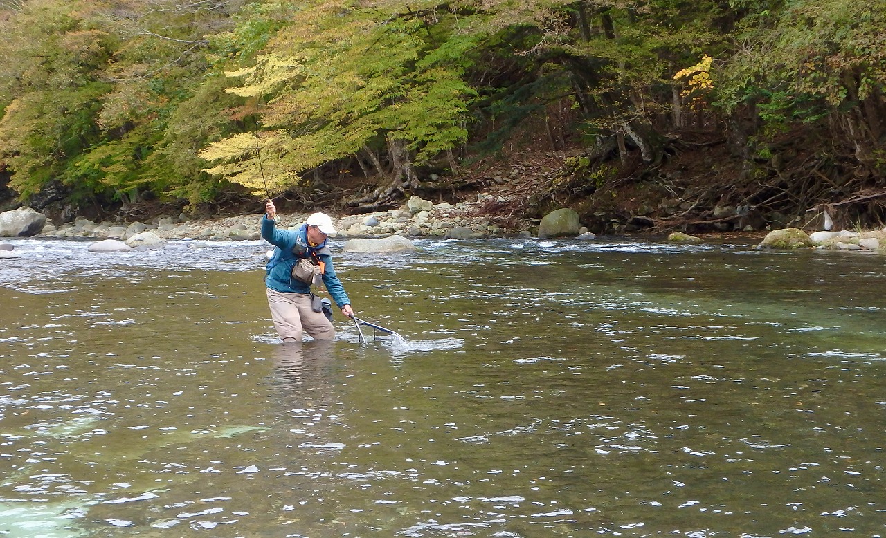 フライが小さかったのでバラシが心配でハラハラのやり取りでしたが何とかネットに入れることが出来ました。