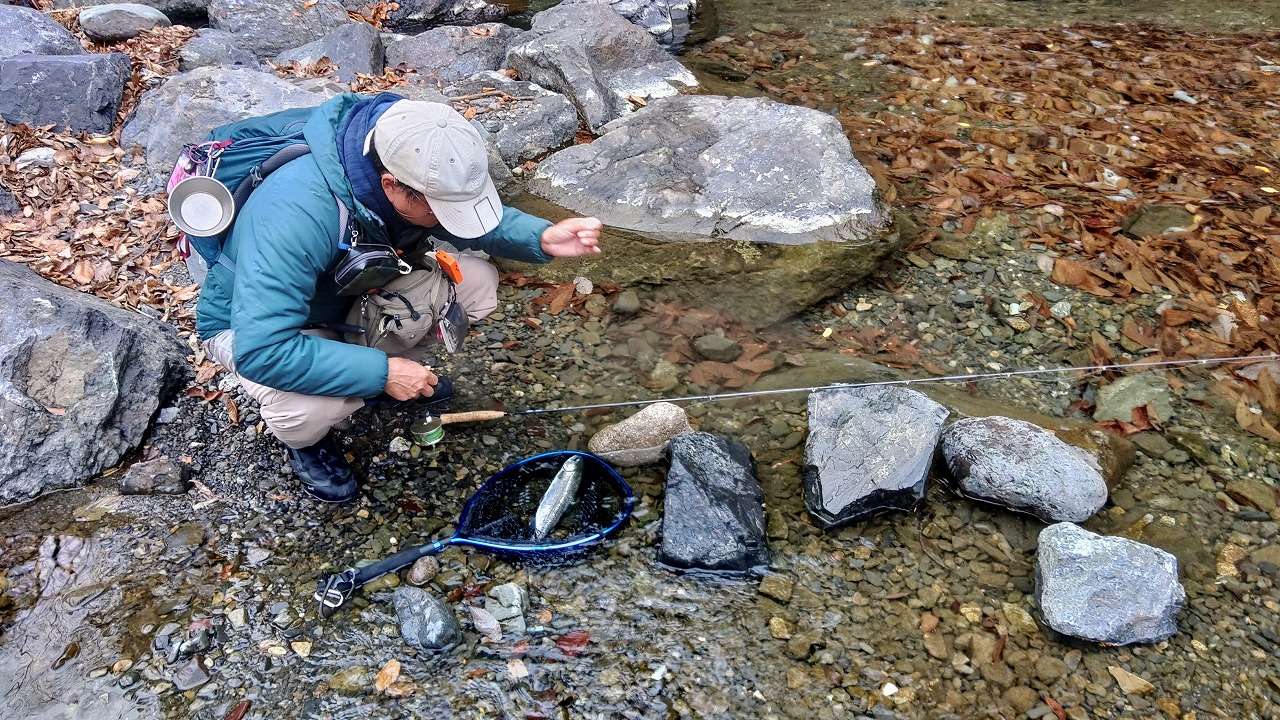 さっそくkamiさんがいいサイズのハコスチと格闘しています。