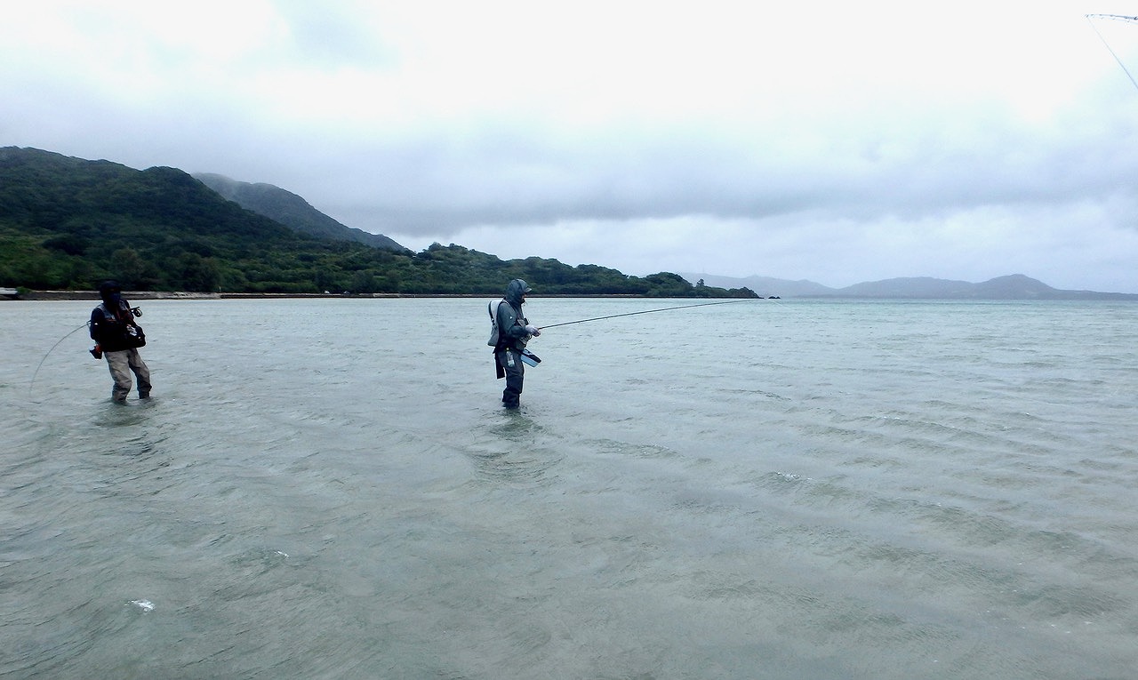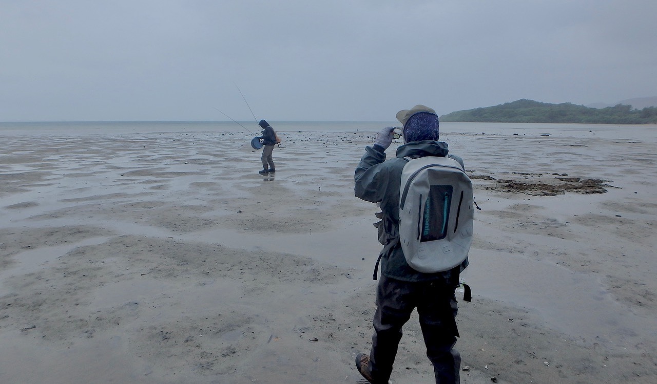 昼食後潮が満ち始める大物ポイントへ移動したが、バックから強風が吹き荒れガイドのH氏に時々支えられ風をやり過ごすほどだ(多分ガイドのH氏はあきれていたかも)。