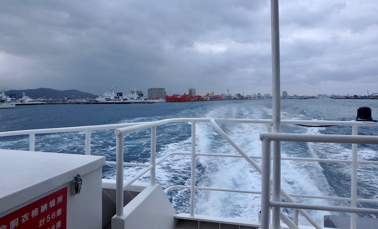 フェリーから見た石垣港。