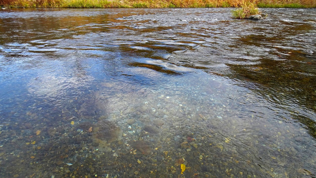 ちょっと見えにくいですが、瀬頭に産卵床がありました。