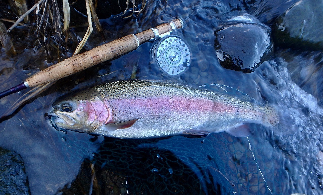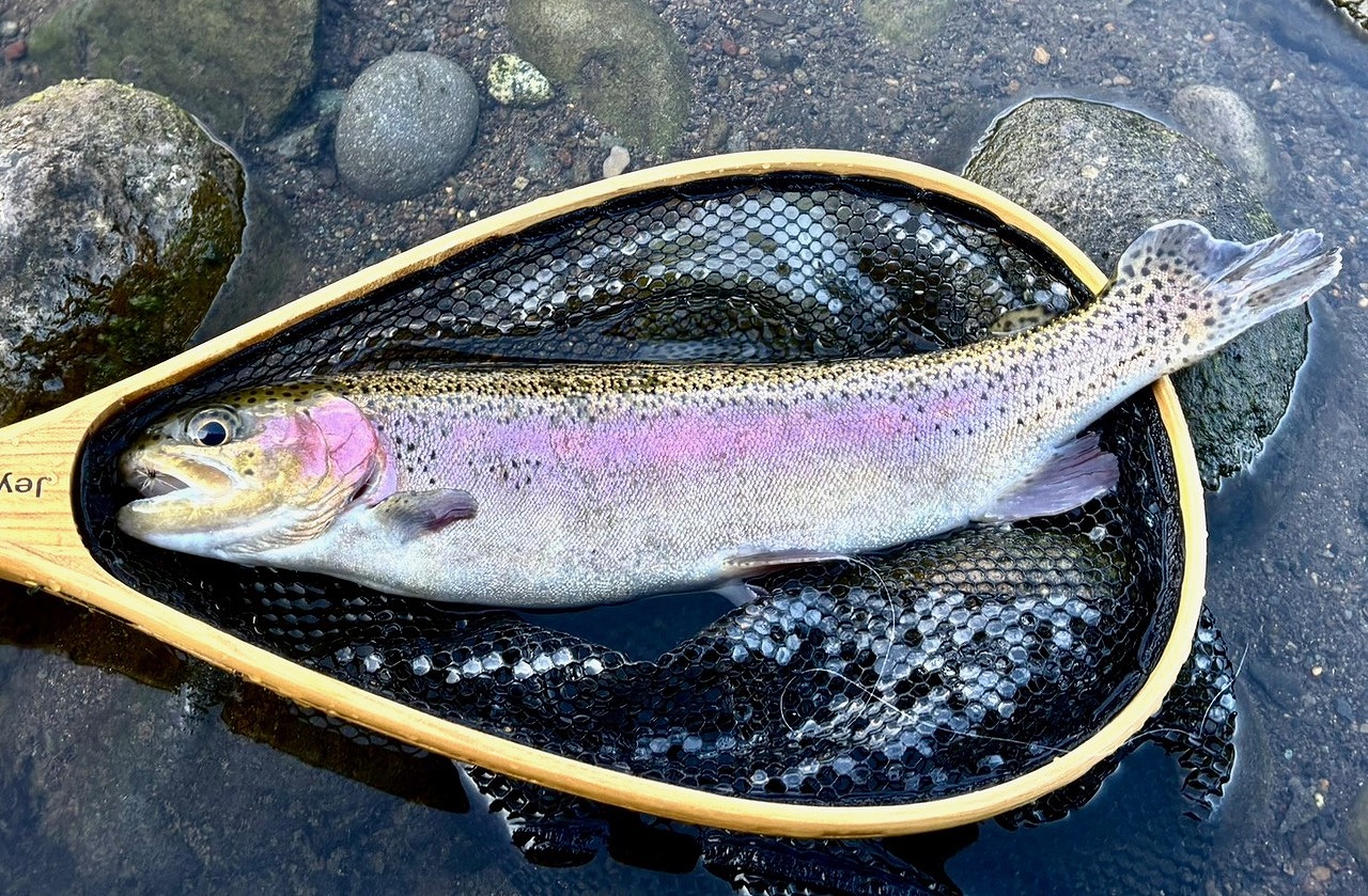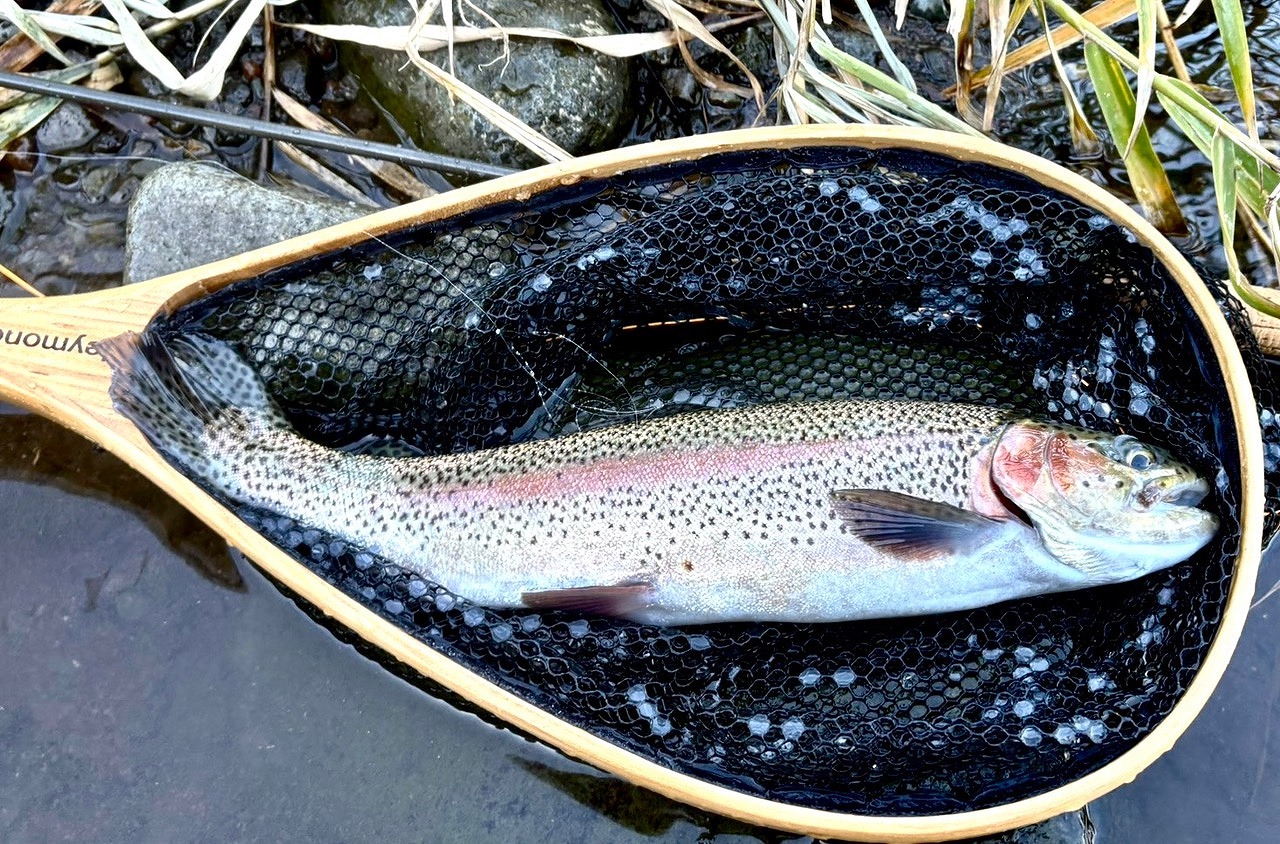 午後はライズが頻繁にあるプールで婿さんと並んでニジマスと対峙、すっぽ抜けやバラし完全無視など鱒に遊ばれ楽しい時間をすごせた。