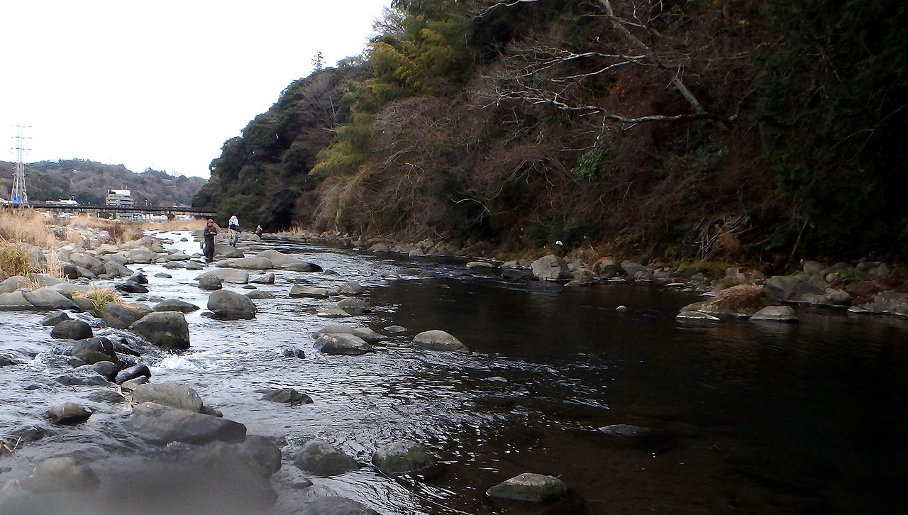 この1,2年平日でも混雑するようになった小田原早川の冬季釣り場。