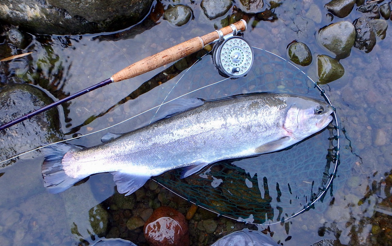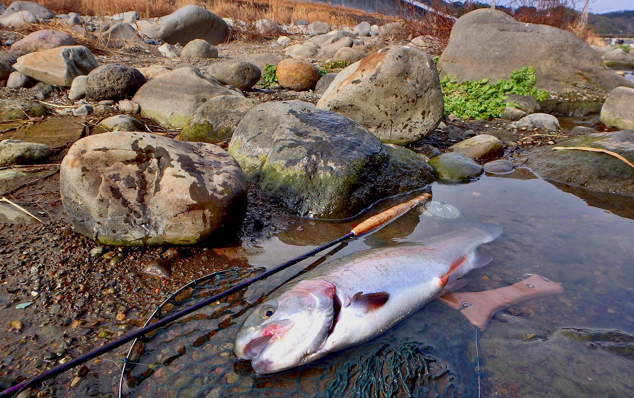 長いやり取りの末やっとネットイン。ティペットを4Xにしておいて良かった〜。